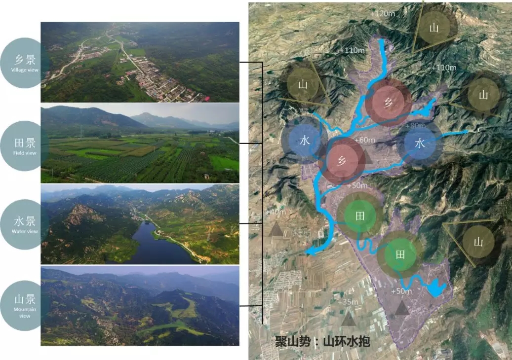 (1)營(yíng)造獨(dú)特的鄉(xiāng)村環(huán)境與文化氛圍,充分利用淺丘地勢(shì)環(huán)境與水系資源,讓鄉(xiāng)村度假“上山入水”;