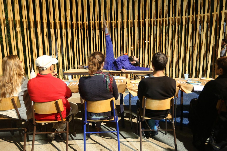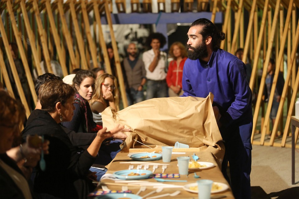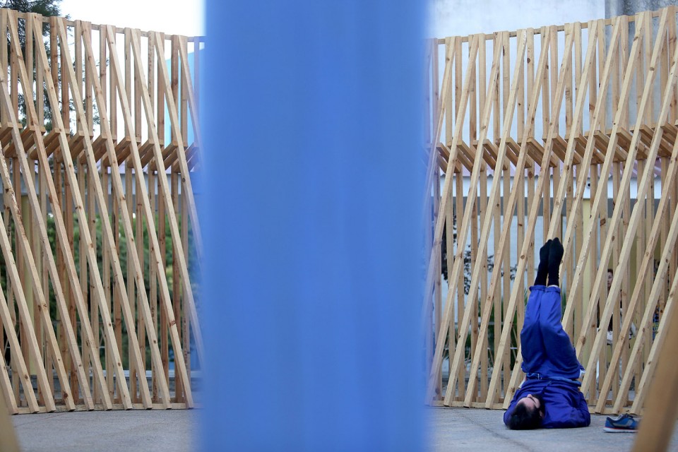 In his book “Atlas do corpo e da imagina??o” (Atlas of the body and the imagination) Gon?alo M. Tavares talks about the construction of situations in two types: the receptors movements of existence, the ones that adapt themselves by receiving the actions in a passive way, and the emitting movements of existence, the ones that work in the opposite way by proposing and changing the circumstantial conditions. POVERA is located just in the middle point between the entrance of the Festival area and the entrance to the main stage and the people is invited to walk through the space where a performance is taking place. It starts before the first person has arrived and finishes after the last one has left, with no one. The audience is invited to see and to make part of the play simple by passing thought and change the action. So the audience is simultaneously receptor and emitter of movements inside the stage that at the end is the life itself, it’s the routine, the ritual and the everyday life. Is it really true that “theater is the place where the Architecture ends and the world of the imagination and the foolishness begins”?