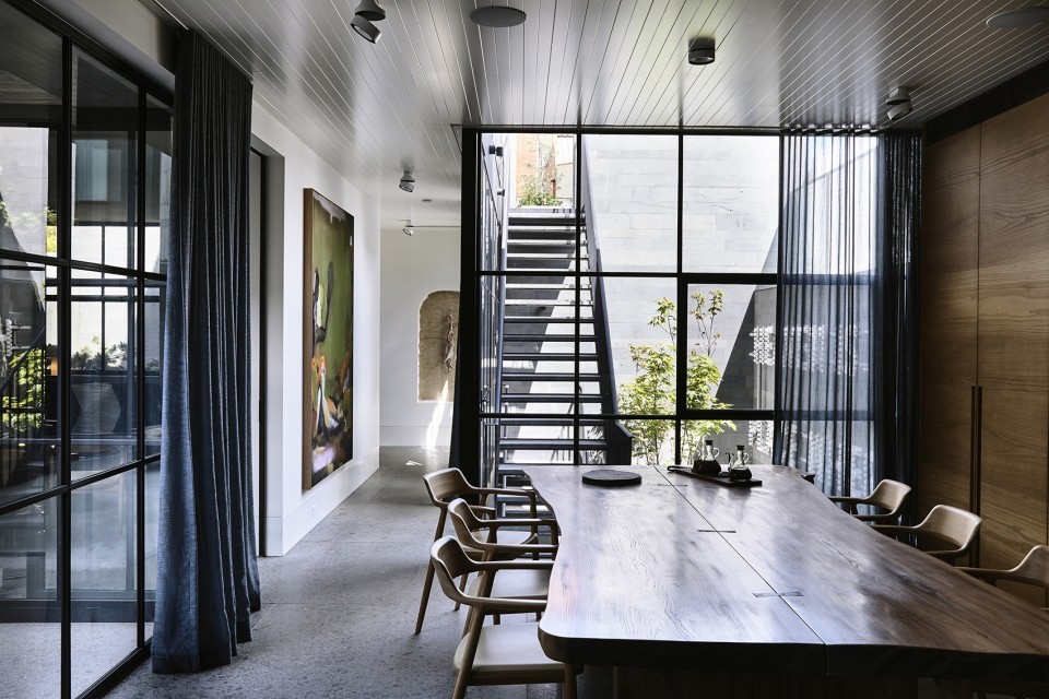As a modern renaissance home, the St Vincents Place Residence is a new archetype developed through reinterpretation of classical references with a modern sensibility. The client, as a patron, put his belief in architecture, artists and artisans to create a nourishing environment that goes beyond surface treatments by inscribing contemplative experiences into the physical form. Positioned behind a significant heritage fa?ade, the new extension is a cultural bridge between historical significance and modern progress.