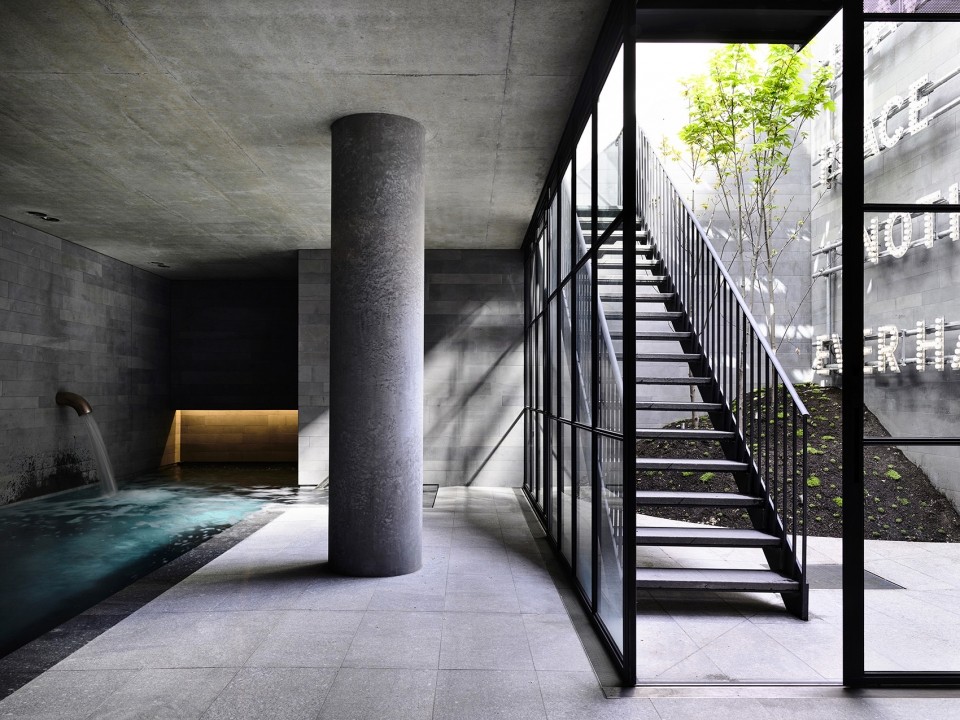 后半部分體量以現(xiàn)場(chǎng)澆筑的混凝土打造,并鋪設(shè)以水磨石風(fēng)格的石制地板、漆面的木制天花板以及青石材質(zhì)的墻面,從而與房屋的前半部分形成對(duì)比。不同于現(xiàn)代建筑中常見(jiàn)的極簡(jiǎn)主義,房間內(nèi)的細(xì)部仍舊保持了古典風(fēng)格,以豐富的紋理延續(xù)著手工雕刻的質(zhì)感。