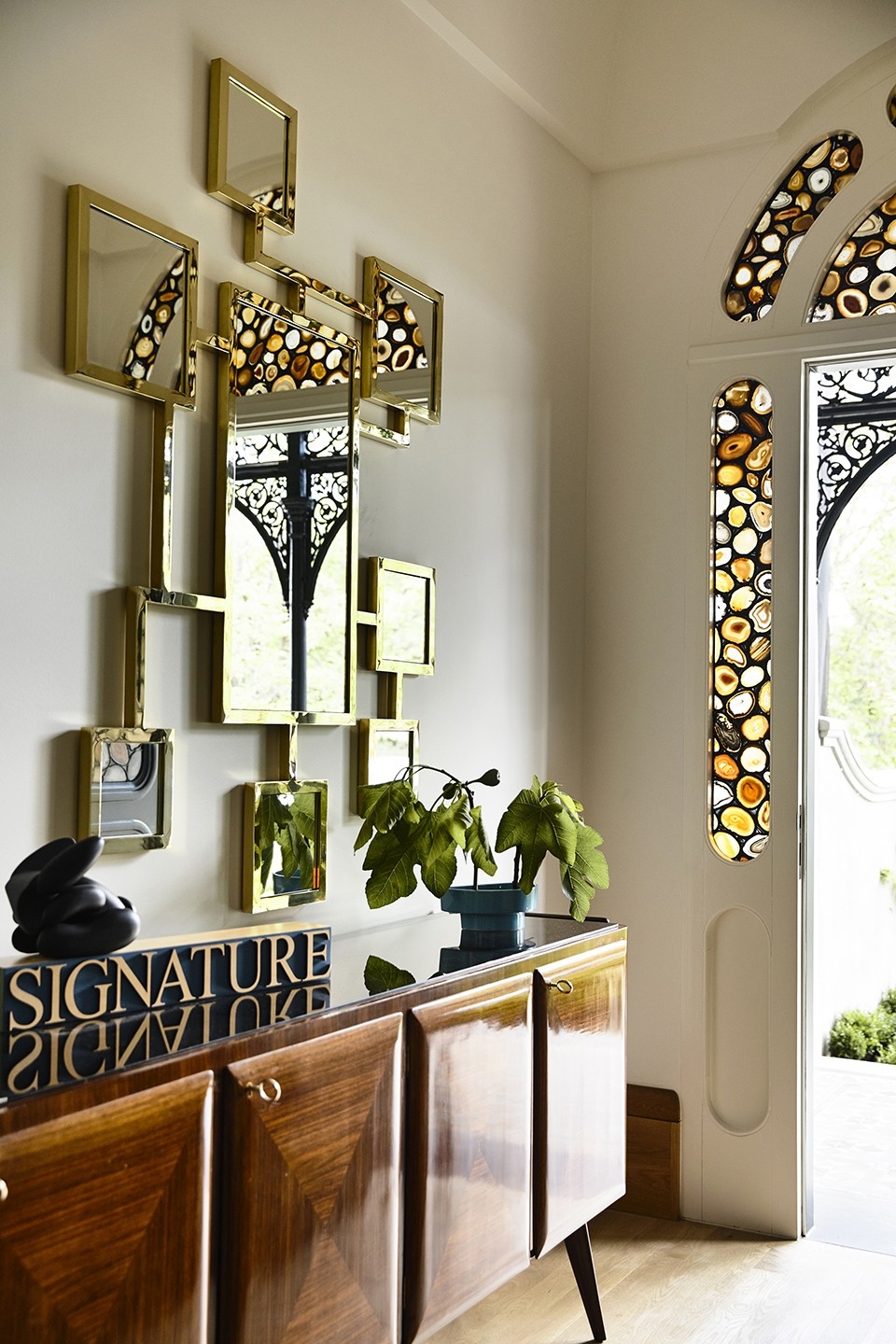 Leading the way to intellectual discourse, the substantial art collection explores topics of philosophy, literature, religion and even science. At moments these are literally written into the walls, such as the three storey light-well built around the lightwork Heaven is a place where nothing ever happens by artist Nathan Coley and the niche installation of the wax sculpture Romeu ‘my deer’ by artist Berlinde De Bruyckere. As carefully curated as the art collection, the interiors for the house is an eclectic mix covering diverse cultural references across many eras. Many of the rooms are positioned around knowledge, encasing collections of books on expansive shelves and using them as a centrepiece within the custom coffee table in the living room.